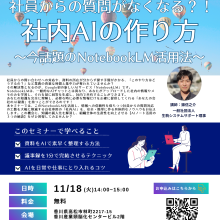 - 【無料AIセミナー開催!】社員からの質問がなくなる?!GoogleAIで実現する、自社専用「社内AI」の作り方