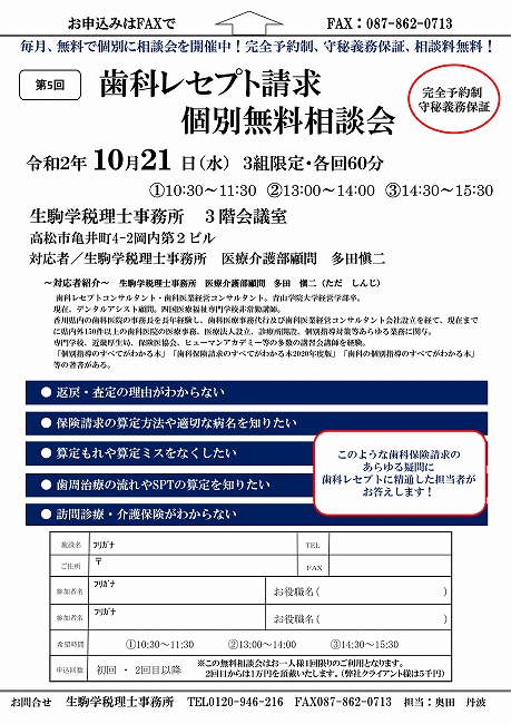 令和2年10月21日(水)第5回『歯科レセプト請求個別無料相談会』