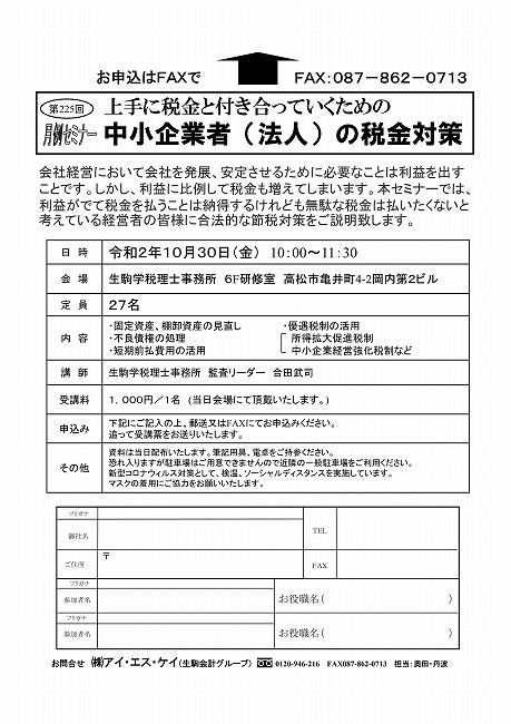令和2年10月30日(金)『中小企業者(法人)の税金対策』