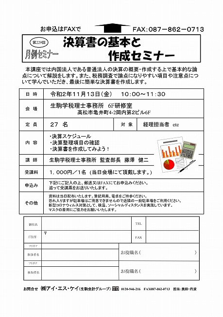 令和2年11月13日(金)『決算書の基本と作成セミナー』