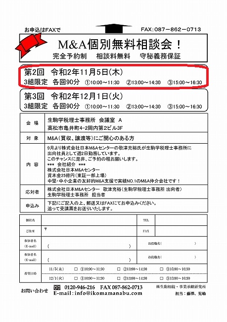令和2年11月5日(木)『第2回 M&A個別無料相談会!』