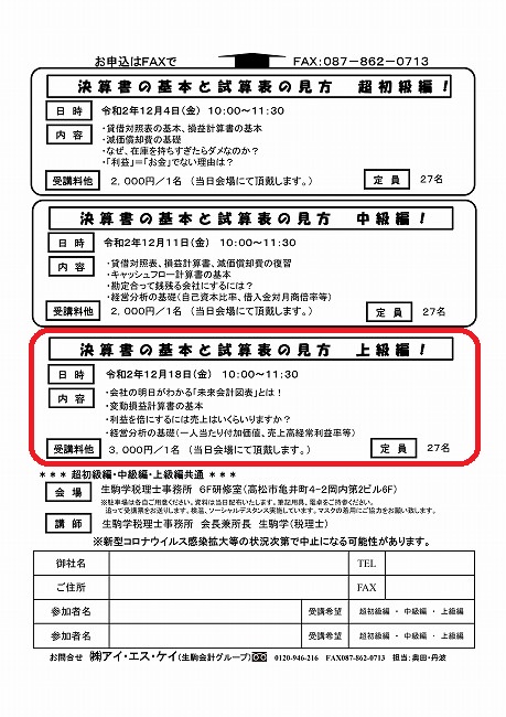 令和2年12月18日(金)『決算書の基本と試算表の見方(上級編)』
