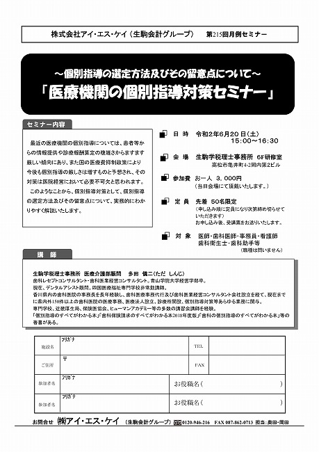 令和2年6月20日(土)『医療機関の個別指導対策セミナー』