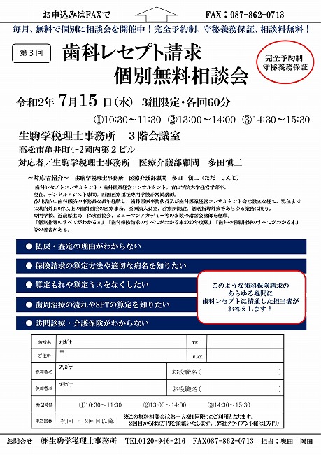 令和2年7月15日(水)第3回『歯科レセプト請求個別無料相談会』