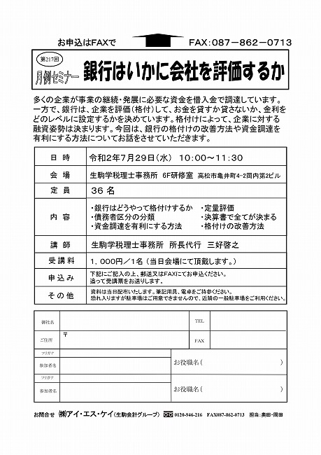 | 会場 | 生駒学税理士事務所 6F研修室 高松市亀井町4-2 岡内第2ビル |