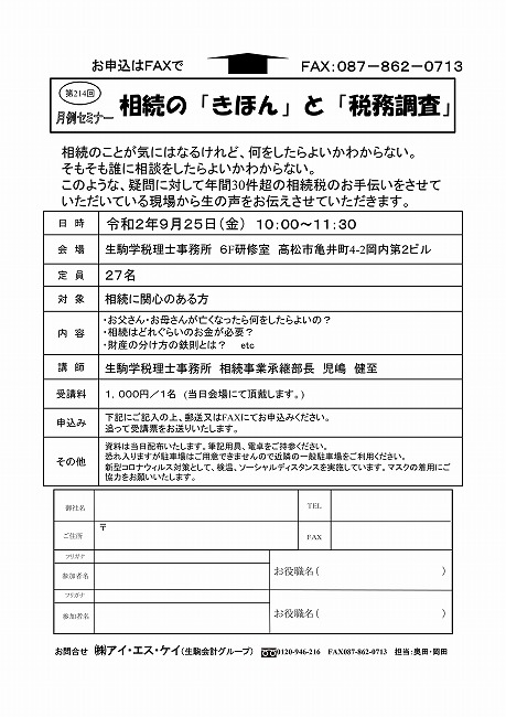 令和2年9月25日(金)『相続の「きほん」と「税務調査」』
