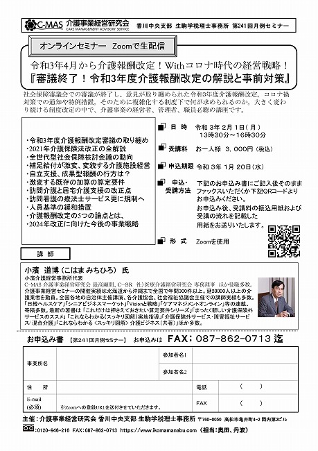 令和3年2月1日(月)WEBセミナー『審議終了!令和3年度介護報酬改定の解説と事前対策』