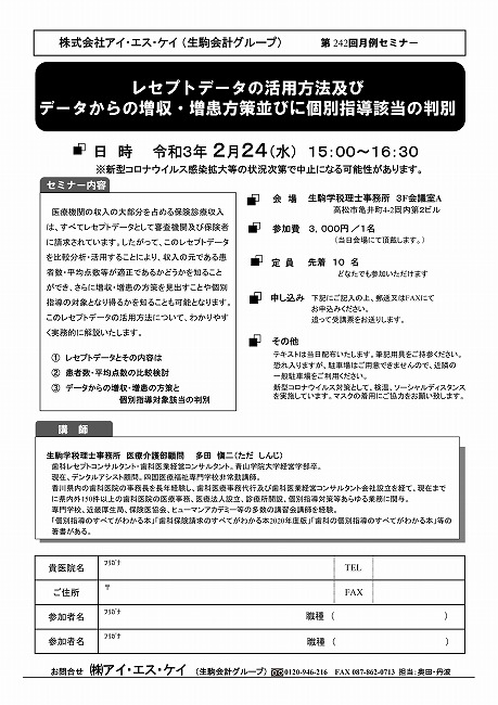 令和3年2月24日(水)『レセプトデータの活用方法及び データからの増収・増患方策並びに個別指導該当の判別』