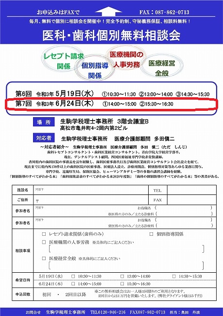 令和3年6月24日(木)『第7回医科・歯科個別無料相談会』
