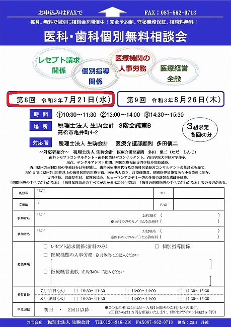 令和3年7月21日(水)『第8回医科・歯科個別無料相談会』