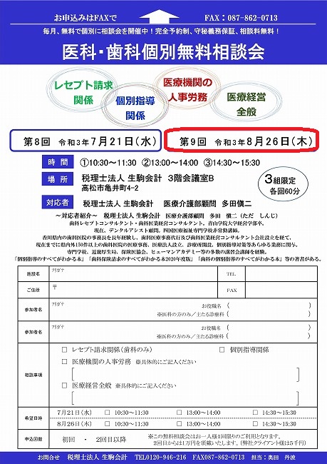令和3年8月26日(木)『第9回医科・歯科個別無料相談会』