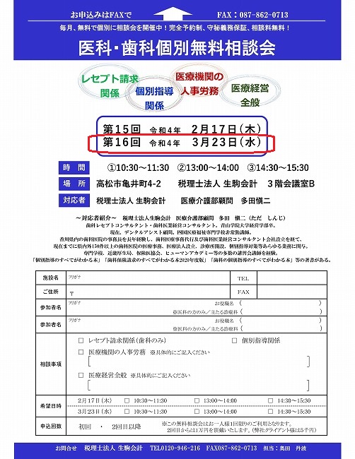令和4年3月23日(水)『第16回医科・歯科個別無料相談会』